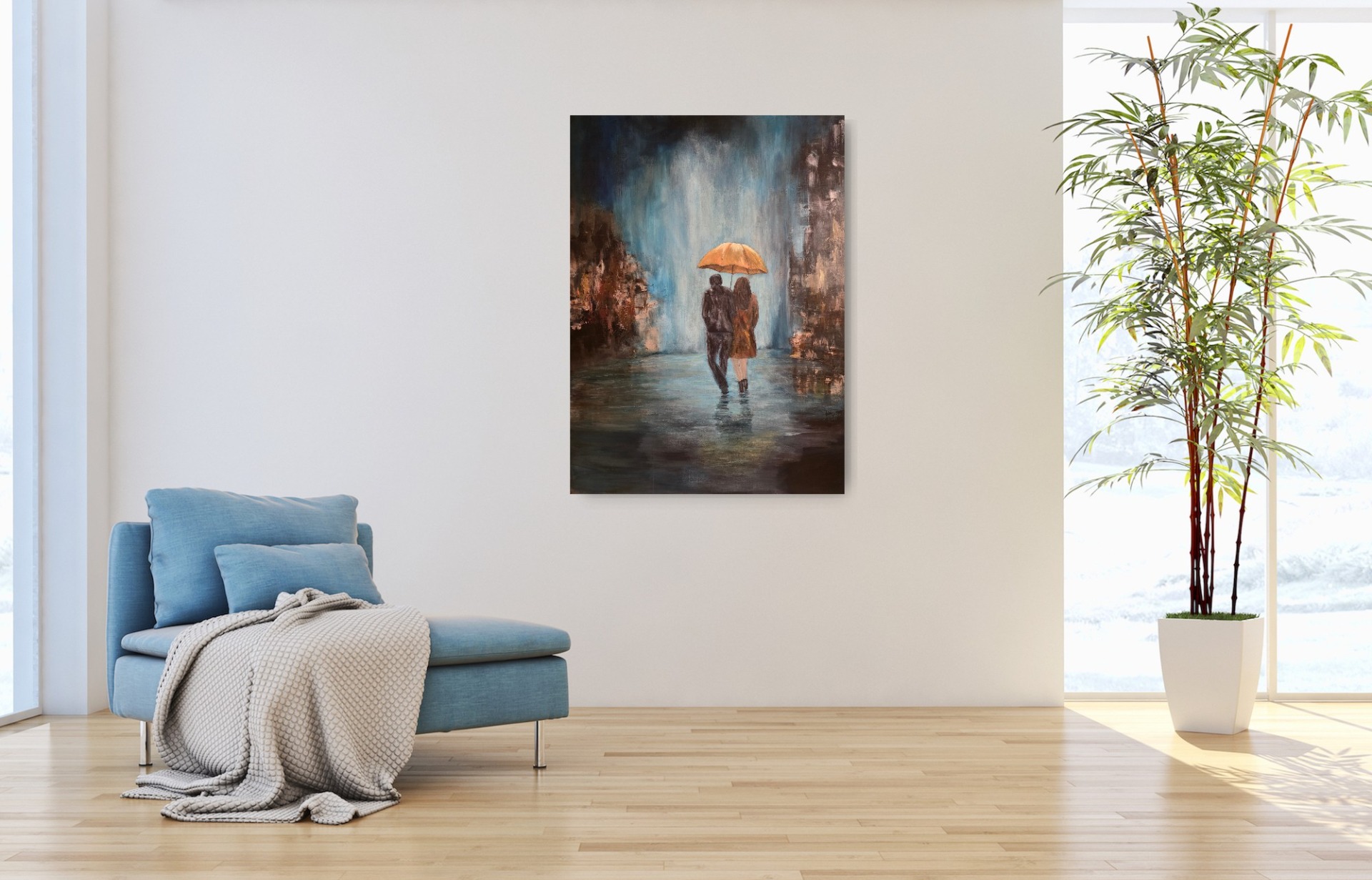 Et flott bilde malt i akryl, 60×80 cm "han og hun" 2 cm blindramme, kan henges rett på vegg. Kr 1500
