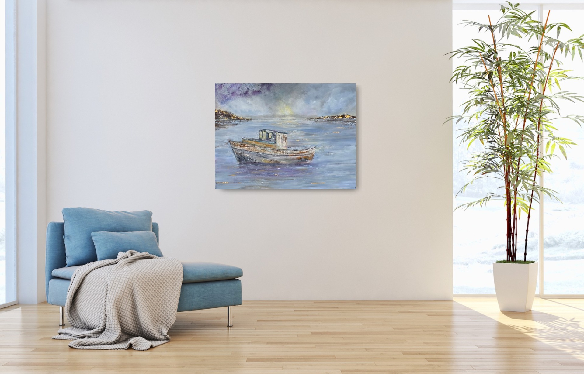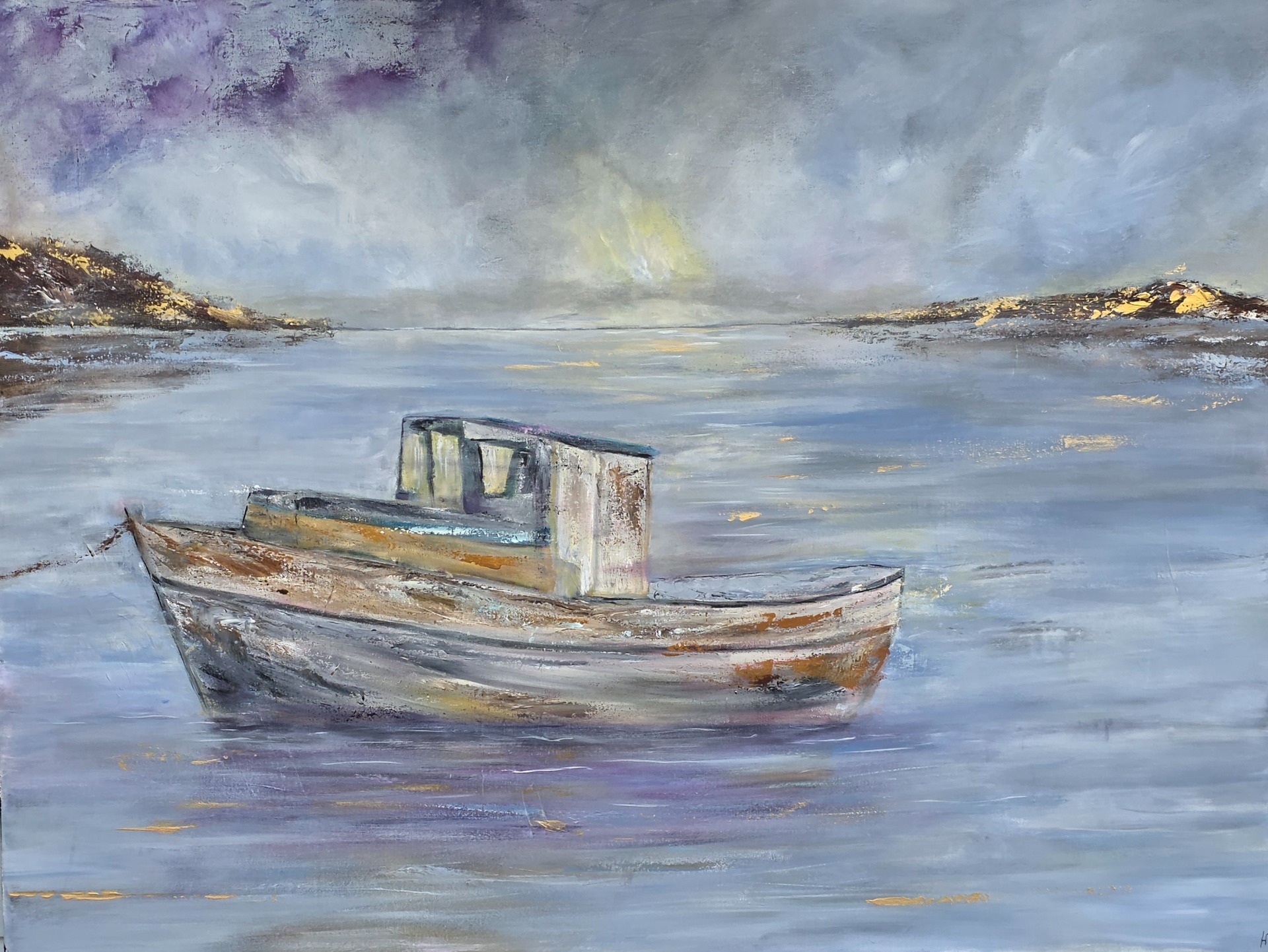 Akryl maleri på lerret 90×120 cm " havet vet veien" kr 7800,-